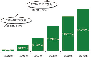 圖4 2005-2010年中國(guó)無線搜索用戶數(shù)量變化情況