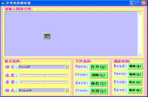 Speech SDK5.1在朗讀中英混合文本時,用中文引擎,對于英文單詞只能將其包括的各個字母逐一朗讀出來;用英文引擎,漢字就不能讀,這樣就失去了其本來的意義。中英雙語閱讀器在這方面進行了改進,實時在中英文引擎之間進行切換,從而實現(xiàn)了真正意義上的中英文朗讀,這是本研究最大的創(chuàng)新點。同時根據(jù)Microsoft