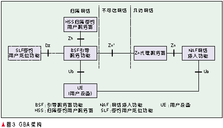 GBA是采用共享密鑰的統(tǒng)一認(rèn)證架構(gòu),其網(wǎng)絡(luò)模型見圖3。