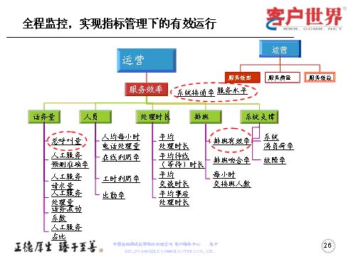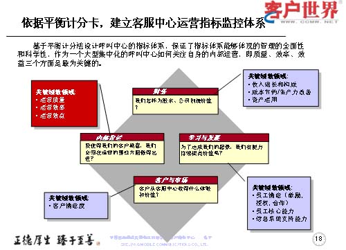 第一,是依據(jù)平衡計分卡原理,建立了客服中心運(yùn)營指標(biāo)監(jiān)控體系,以實現(xiàn)呼叫中心的規(guī);(jīng)濟(jì)運(yùn)營。