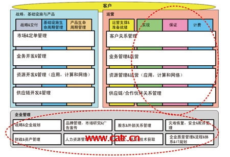 總的來看,現(xiàn)有系統(tǒng)基本覆蓋了eTOM各個功能點,實現(xiàn)了市場/客戶、業(yè)務(wù)、資源(基礎(chǔ)電信網(wǎng)絡(luò)、計算資源及業(yè)務(wù)平臺)和企業(yè)管理等功能。