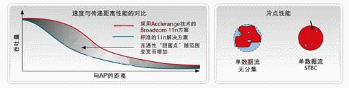 為了向聯(lián)網(wǎng)家庭提供強(qiáng)大的無線骨干網(wǎng),Broadcom利用Acclerange技術(shù)對其新的802.11n路由器平臺作了全面優(yōu)化,其軟硬件增強(qiáng)性能確保了家庭中任一角落的更健壯的無線覆蓋。Accelerange軟件架構(gòu)還支持時空分組編碼(STBC)技術(shù),采用了獨特的2×2天線結(jié)構(gòu),從而能以盡可能低的成本提供更好的性能。它的非線性均衡器只需要兩個,而65nm工藝的集成更是有助于進(jìn)一步降低成本。另外,基于Accelerange的解決方案針對視頻分發(fā)和其他多媒體應(yīng)用作了優(yōu)化,其內(nèi)置算法可以檢測多媒體數(shù)據(jù)流,并通過動態(tài)調(diào)整來實現(xiàn)最優(yōu)性能。經(jīng)認(rèn)證的動態(tài)頻率選擇(DFS)技術(shù)還可以在5GHz頻段內(nèi)增加15個信道。