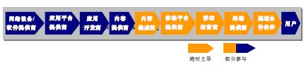 3G時(shí)代的移動(dòng)通信產(chǎn)業(yè)鏈由技術(shù)平臺(tái)提供商、設(shè)備提供商、應(yīng)用平臺(tái)提供商、應(yīng)用開發(fā)商、內(nèi)容提供商、內(nèi)容集成商、移動(dòng)平臺(tái)提供商、移動(dòng)運(yùn)營商、終端提供商、渠道合作伙伴等市場(chǎng)主體構(gòu)成。移動(dòng)通信產(chǎn)業(yè)鏈?zhǔn)且粋(gè)整體功能鏈狀網(wǎng)絡(luò),構(gòu)成產(chǎn)業(yè)鏈的市場(chǎng)主體隨著移動(dòng)通信技術(shù)、市場(chǎng)競(jìng)爭(zhēng)情況以及用戶需求的變化而變化。移動(dòng)運(yùn)營商在產(chǎn)業(yè)鏈上發(fā)揮的作用也是不同的,每當(dāng)產(chǎn)業(yè)鏈發(fā)生變化時(shí),移動(dòng)運(yùn)營商就需要重新進(jìn)行角色定位。