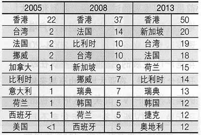 香港的IPTV滲透率始終保持首位,主要?dú)w功于作為市場(chǎng)領(lǐng)軍人物的香港電訊盈科大規(guī)模的業(yè)務(wù)開展見表3。香港電訊盈科在充分利用有線電視運(yùn)營(yíng)商香港有線寬頻面對(duì)市場(chǎng)做出反應(yīng)較慢的同時(shí),通過(guò)為用戶提供按月任意選擇頻道服務(wù)實(shí)現(xiàn)了快速的市場(chǎng)占有。香港電訊盈科目前鼓勵(lì)用戶對(duì)服務(wù)包進(jìn)行長(zhǎng)期投資以增加收入,同時(shí)減少季節(jié)性收入(例如,每當(dāng)歐洲足球季結(jié)束時(shí)營(yíng)業(yè)額出現(xiàn)下滑)。目前 有超過(guò)三分之一的香港電視家庭接收IPTV信號(hào)。盡管增長(zhǎng)有所減慢,仍舊有一半的香港電視家庭到2013年將接收IPTV。香港將與排名其后的國(guó)家始終保持較大的差距。到2013年,新加坡的IPTV滲透率將排名第二,為20%。新加坡市場(chǎng)與香港有著相似之處,主要是由于新加坡電信公司與有線電視運(yùn)營(yíng)商StarHub Cable Vision之間的競(jìng)爭(zhēng)。臺(tái)灣將位居新加坡之后,滲透率為19%。法國(guó)則憑借18%的滲透率位居第三,荷蘭和比利時(shí)排名其后。荷蘭和比利時(shí)均是有線電視覆蓋較廣的國(guó)家,但是IPTV運(yùn)營(yíng)商卻通過(guò)有足夠吸引力的服務(wù)包贏得了用戶。到2013年,有12個(gè)國(guó)家的IPTV滲透率將超過(guò)l0%,l4個(gè)國(guó)家的滲透率僅為2%或更低。拉丁美洲的滲透率較低主要?dú)w結(jié)于IPTV在該地區(qū)大部分開始較晚。