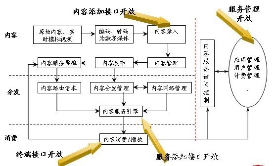 必須實現(xiàn)接口開放,從2004年到現(xiàn)在做了這么長時間,解決機頂盒和系統(tǒng)的標(biāo)準(zhǔn)化問題,全國的機頂盒都是一個接口,F(xiàn)在初步解決了接口開放的問題,增值業(yè)務(wù)添加接口可以實現(xiàn)局部的標(biāo)準(zhǔn)化和開放,但是應(yīng)該說大量的接口還是封閉,如果要走到和行業(yè)深度結(jié)合階段,這個接口要進一步開放,而不是打造成全封閉的系統(tǒng)。
