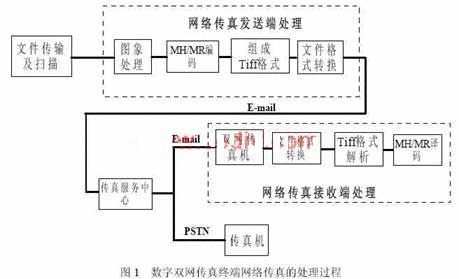 實現(xiàn)完整網(wǎng)絡(luò)傳真收發(fā)的功能與步驟,可以分為網(wǎng)絡(luò)傳真發(fā)送處理及網(wǎng)絡(luò)傳真接收處理兩個部分。其中網(wǎng)絡(luò)傳真接收端的處理可以理解為網(wǎng)絡(luò)傳真發(fā)送處理的逆過程。