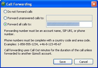 如果你不想用Gizmo5這個客戶端的話,點擊Edit->Call Forwarding,選擇Forward all calls to,并填寫sip:username@gmail.com,之后所有撥打Google Voice號碼的電話就都會被轉(zhuǎn)接到你的Gtalk了。