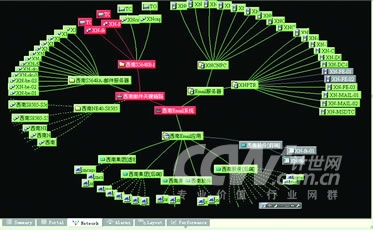其次根據(jù)掌握的信息進行建模。建模包括兩個方面,一是形成組件間的關(guān)聯(lián); 二是在關(guān)鍵組件上部署邏輯算法。邏輯算法也是根據(jù)業(yè)務(wù)邏輯和IT管理規(guī)則制定的。邏輯算法的應(yīng)用,極大地提高了根源問題定位的效率和準確性。以西南區(qū)域郵件系統(tǒng)為例,影響西南郵件的因素有三類: 服務(wù)器、郵件應(yīng)用協(xié)議和關(guān)鍵鏈路。通常,當連接某臺服務(wù)器的關(guān)鍵鏈路中斷時,相應(yīng)的服務(wù)器及其上的協(xié)議也會顯示異常狀態(tài)。我們會看到大量告警節(jié)點和信息,無法判斷故障的根本原因。通過在關(guān)鍵點上設(shè)置邏輯算法,當發(fā)生上述異常時,只讓發(fā)生故障的關(guān)鍵鏈路節(jié)點變紅,而讓受之影響的服務(wù)器和協(xié)議節(jié)點處于靜默狀態(tài)(灰色顯示),從而使IT管理人員能夠直觀快速地判斷出故障的根源所在(如圖所示)。