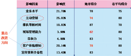 針對表現(xiàn)不好的渠道,運(yùn)營商通過對影響度和得分表現(xiàn)進(jìn)行分析,可以發(fā)現(xiàn)渠道中影響度高而得分低的影響因素,這些影響因素就是渠道重點(diǎn)改進(jìn)方向。最終,通過對重點(diǎn)方向進(jìn)行分析,提出相應(yīng)的改進(jìn)策略,能夠有效提高渠道運(yùn)營水平。