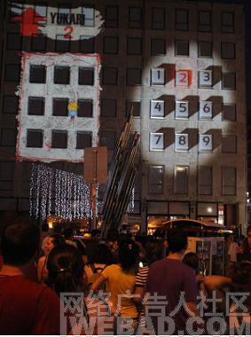 廣告執(zhí)行:代理公司聯(lián)合媒介公司(傳立)在伊斯坦布爾的市中心一棟大樓上做了一個(gè)好玩的吃豆豆投影游戲。