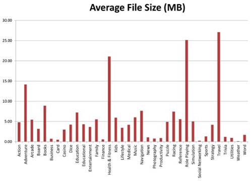 注意控制應(yīng)用的文件大小,這在相當(dāng)程度上會(huì)影響到應(yīng)用的下載量。如果你的iOS應(yīng)用的文件大小超過10MB,這將會(huì)使你失去很多潛在用戶。10MB通常是冒險(xiǎn)和角色扮演類游戲、健康和旅游類應(yīng)用的大小。為了節(jié)約流量,用戶通常選擇用Wifi下載它們。