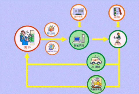 售后技術(shù)咨詢及報(bào)修:用戶購機(jī)之后,同樣可以通過電話或者網(wǎng)絡(luò)進(jìn)入呼叫中心系統(tǒng),系統(tǒng)會(huì)通過用戶檔案庫得到用戶的詳細(xì)信息并為他尋找合適的咨詢員,咨詢員會(huì)依據(jù)共享的知識(shí)庫為用戶解決問題,如果用戶的機(jī)器需要上門服務(wù)。咨詢員會(huì)通過網(wǎng)絡(luò)查詢?nèi)珖⻊?wù)渠道的工程師和備件情況,并安排工程師迅速上門為用戶服務(wù)。維修完成一天后,系統(tǒng)會(huì)自動(dòng)產(chǎn)生電話呼出,由咨詢員直接詢問用戶對(duì)服務(wù)過程的滿意程度,以便改進(jìn)我們的工作。