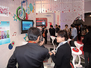 在通信展上,中國(guó)移動(dòng)在展場(chǎng)核心區(qū)展示了面向2008年奧運(yùn)會(huì)的奧運(yùn)無(wú)線(xiàn)業(yè)務(wù)和全曲下載“音樂(lè)隨身聽(tīng)”,中國(guó)聯(lián)通則重點(diǎn)展示了其最具特色的整首音樂(lè)下載業(yè)務(wù),吸引了大批觀(guān)眾。許多觀(guān)眾還在中國(guó)移動(dòng)和中國(guó)聯(lián)通無(wú)線(xiàn)音樂(lè)展臺(tái)前,現(xiàn)場(chǎng)聆聽(tīng)各種動(dòng)聽(tīng)的歌曲,體驗(yàn)無(wú)線(xiàn)音樂(lè)的魅力?梢哉f(shuō),手機(jī)音樂(lè)成為手機(jī)娛樂(lè)業(yè)務(wù)中最受人們關(guān)注的亮點(diǎn)。