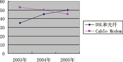 市場(chǎng)研究公司ParksAssociates最新發(fā)布的研究報(bào)告稱,2007年美國(guó)住宅用戶的寬帶網(wǎng)普及率將超過50%,美國(guó)住宅寬帶網(wǎng)用戶將超過6000萬,這些用戶都可以通過寬帶接入享受三種業(yè)務(wù)捆綁服務(wù)。由于電信公司的寬帶接入技術(shù)占優(yōu)勢(shì),因而在三種業(yè)務(wù)捆綁服務(wù)方面,電信公司占有競(jìng)爭(zhēng)優(yōu)勢(shì)。所以,凡是在兩家有競(jìng)爭(zhēng)的地方,有線電視公司都無例外地降低了價(jià)格,并失去了相當(dāng)一部分傳統(tǒng)市場(chǎng)。