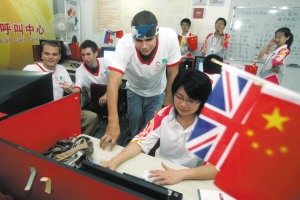 奧帆賽多國(guó)語(yǔ)言志愿者呼叫中心正式上崗已經(jīng)5天了。昨天,記者在多國(guó)語(yǔ)言呼叫中心目睹了志愿者們一天的工作。