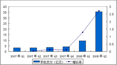 隨著手機(jī)支付業(yè)務(wù)的成熟以及產(chǎn)業(yè)鏈的完善,2008年第一季度,手機(jī)支付業(yè)務(wù)迎來了發(fā)展的一個(gè)高峰,在第二季度,由于賑災(zāi)募捐通道的打開,手機(jī)支付有了一個(gè)爆炸性的增長(zhǎng),在手機(jī)捐款中,手機(jī)支付的便利性和即時(shí)性優(yōu)點(diǎn)得到了極大展現(xiàn)。