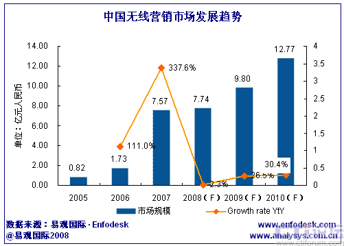 易觀:2008年中國(guó)無(wú)線營(yíng)銷(xiāo)市場(chǎng)規(guī)模將達(dá)7.74億元