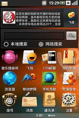 據(jù)介紹,在Ophone手機(jī)最終版主界面中嵌入了手機(jī)搜索欄,實(shí)現(xiàn)對手機(jī)內(nèi)容的一鍵搜索,同時它支持手機(jī)內(nèi)多種數(shù)據(jù)及互聯(lián)網(wǎng)的全面搜索。