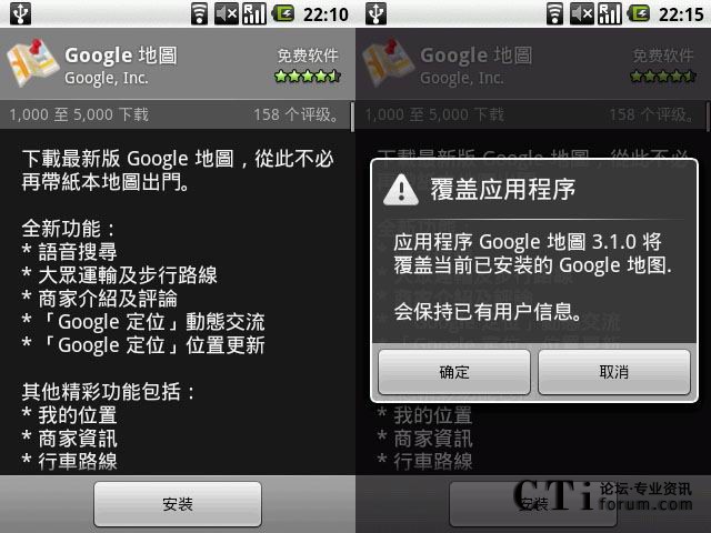 CTI論壇(ctiforum)06月16日消息: 6月14日,Google Mobile團(tuán)隊(duì)對(duì)Android系統(tǒng)的Google Maps進(jìn)行了大幅更新,加入了大量新的功能,并且修復(fù)了一些Google Latitude的bug。