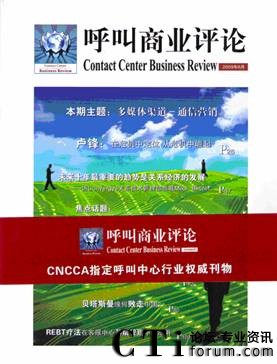 《呼叫商業(yè)評論》(Contact Center Business Review )是一本服務于呼叫中心行業(yè)企業(yè)高管人群的高端雜志,是CNCCA呼叫中心及客戶關系管理協(xié)會指定呼叫中心行業(yè)權威刊物,可作為高端客戶群體的行業(yè)指南,洞悉行業(yè)新舉措,法規(guī)新動態(tài)的風向標。