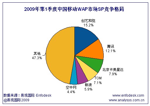 2009年第1季度中國(guó)移動(dòng)WAP市場(chǎng)集中度提高前五名占據(jù)市場(chǎng)半壁江山