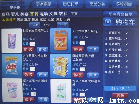 記者在家樂(lè)福IPTV購(gòu)物平臺(tái)上看到,商品的種類相當(dāng)豐富,按日常用到的分成了食品、嬰兒、美容、百貨、運(yùn)動(dòng)、文具、飲料幾個(gè)大類,而每一類里又分成不同的小類,比如美容類里又分護(hù)膚、清潔、男士、彩妝、紙巾等小類。其價(jià)格與在家樂(lè)福購(gòu)物相同,并且還有不少產(chǎn)品在打折。滿118元即可免費(fèi)配送,對(duì)于沒有時(shí)間、精力逛超市的人來(lái)講,可以說(shuō)相當(dāng)方便。