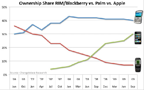 圖:市場(chǎng)研究公司ChangeWave Research對(duì)智能手機(jī)市占最新分析數(shù)據(jù)