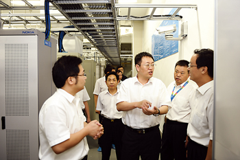 河南洛陽市12580家庭服務(wù)呼叫中心經(jīng)過一段時(shí)間的試運(yùn)行,目前已有200多家家庭服務(wù)業(yè)公司加入該呼叫中心,實(shí)現(xiàn)了保姆、月嫂、保潔、開鎖、家教、婚慶、送鮮花、快遞、送餐和鐘點(diǎn)工等十幾項(xiàng)服務(wù),并將逐步擴(kuò)大到50多項(xiàng)服務(wù)。圖為洛陽市副市長(zhǎng)高頌革(右三)在洛陽移動(dòng)公司視察指導(dǎo)工作。