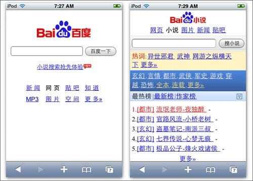 百度推出掌上百度、百度手機(jī)輸入法、百度快搜、百度地圖移動(dòng)版等產(chǎn)品后,如今又推出了百度Wap小說(shuō)搜索頻道。以后我們可以直接拿手機(jī)上百度看小說(shuō),不用麻煩先在電腦上搜索好并下載復(fù)制過(guò)來(lái),這給廣大用戶(hù)在線(xiàn)閱讀提供了方便。