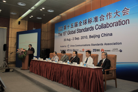 8月30日至9月2日,信息通信領(lǐng)域“第15屆全球標(biāo)準(zhǔn)合作大會(huì)”(GSC-15)在北京隆重召開,會(huì)議由中國(guó)通信標(biāo)準(zhǔn)化協(xié)會(huì)(CCSA)主辦。來自國(guó)際電信聯(lián)盟(ITU)和北美、歐洲、中日韓的八個(gè)伙伴標(biāo)準(zhǔn)化組織(日本無線工業(yè)及商貿(mào)聯(lián)合會(huì)(ARIB)、中國(guó)通信標(biāo)準(zhǔn)化協(xié)會(huì)(CCSA)、歐洲電信標(biāo)準(zhǔn)化協(xié)會(huì)(ETSI)、加拿大ICT標(biāo)準(zhǔn)咨詢委員會(huì)(ISACC)、國(guó)際電信聯(lián)盟(ITU)、美國(guó)電信工業(yè)解決方案聯(lián)盟(ATIS)、美國(guó)電信行業(yè)協(xié)會(huì)(TIA)、韓國(guó)電信技術(shù)協(xié)會(huì)(TTA)和日本電信技術(shù)委員會(huì)(TTC)),以及ISO/IEC JTC1、ANSI、OMA、BBF、中國(guó)電子工業(yè)標(biāo)準(zhǔn)化技術(shù)協(xié)會(huì)、TD-SCDMA產(chǎn)業(yè)聯(lián)盟、感知中國(guó)物聯(lián)網(wǎng)聯(lián)盟等19家觀察員的共140多名代表參加了此次會(huì)議。