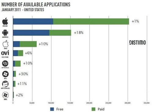 專注于App Store發(fā)展得研究者Distimo昨天公布了一份有關(guān)手機(jī)應(yīng)用程序商店的市場報告,報告顯示W(wǎng)indows Phone 7的增長速度高達(dá)30%。
