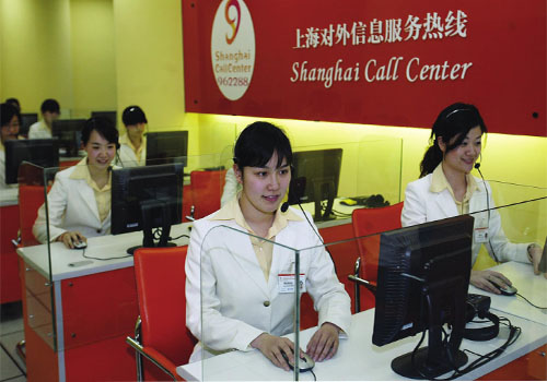 東方網(wǎng)5月1日消息:據(jù)《勞動(dòng)報(bào)》報(bào)道,“Hello。ㄓ⒄Z(yǔ):你好)”、“GutenTag(德語(yǔ):你好)!”、“Bonjour(法語(yǔ):你好)!”……這里就像個(gè)小小的聯(lián)合國(guó),可以聽(tīng)到15種語(yǔ)言;這里又像“女兒國(guó)”,接聽(tīng)電話的都是80后的姑娘;這里就是上海對(duì)外信息服務(wù)熱線962288,365天、24小時(shí)接聽(tīng)外籍人士的問(wèn)詢(xún)電話。