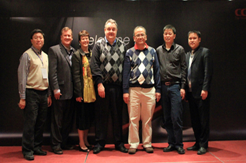 圖:被業(yè)界稱為“酒店電話機(jī)之父”的Ron Lesniak先生與COTELL肯特國(guó)際高層合影