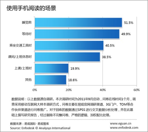 據(jù)易觀國(guó)際(Analysys International)最新報(bào)告《2011年中國(guó)手機(jī)閱讀市場(chǎng)用戶研究報(bào)告》(以下簡(jiǎn)稱《報(bào)告》)研究發(fā)現(xiàn),報(bào)紙、生活資訊、社交資訊等類微內(nèi)容超越文學(xué)作品等長(zhǎng)內(nèi)容成為手機(jī)閱讀用戶的習(xí)慣性閱讀內(nèi)容。