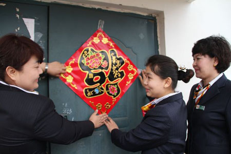 “阿姨,春節(jié)快到了,我們來(lái)看看您,前兩天已經(jīng)幫您把電充上了,這次給您帶了個(gè)手電,用著它以后到地下室可以照個(gè)亮。”隊(duì)長(zhǎng)阿依古麗向丁阿姨說(shuō)明來(lái)意,還跟丁阿姨試了試,手電是充電式的,不用換電池,丁阿姨挺高興的。臨走時(shí),阿依古麗還在她家門(mén)上貼了個(gè)大紅的“!弊郑8@先思倚履昕鞓(lè)。