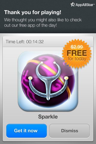 怎樣有效的將應(yīng)用貨幣化呢?簡(jiǎn)單的說,我們首先需要判斷當(dāng)前用戶群的客戶終身價(jià)值,然后通過一系列方法使該價(jià)值得到持續(xù)的提升;這些方法包括“應(yīng)用內(nèi)”的普通廣告、產(chǎn)品體驗(yàn)廣告、來自相同發(fā)布商的其他應(yīng)用信息、相關(guān)增值產(chǎn)品與服務(wù)等。下圖所示的就是在應(yīng)用中推銷另一款產(chǎn)品的典型案例。