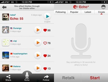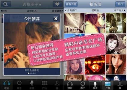 顧名思義,語音分享已經(jīng)不是簡單意義上點對點、單對單的語音短信類服務(wù),如Talkbox、米聊、微信、iMessage。它們都只是語音分享的雛形,而真正做到語音分享性質(zhì)的移動應(yīng)用還比較鮮見,粗略統(tǒng)計一下,大概有下面這么幾個。