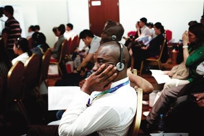 昨日,京交會上,“中國分銷服務(wù)業(yè)企業(yè)走出去”會場,一位外籍嘉賓在認(rèn)真聽同聲傳譯。新京報記者 孫純霞 攝