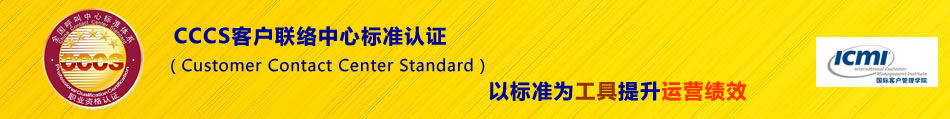 CCCS客戶聯(lián)絡(luò)中心標(biāo)準(zhǔn)體系于2003年6月正式推出,先后有中國人壽、招商銀行信用卡、海爾集團、上海大眾、一汽-大眾、神州數(shù)碼、中國農(nóng)業(yè)銀行、上海郵政、中信銀行、國信證券等在各自行業(yè)客戶服務(wù)和呼叫中心運營中處于領(lǐng)先地位的企業(yè)通過了CCCS標(biāo)準(zhǔn)體系認證,獲得了企業(yè)的高度評價與首肯。此外,截止2008年底,近500名中、高級呼叫中心管理人員接受了CCCS標(biāo)準(zhǔn)體系的培訓(xùn)及人員資格認證。 附:CCCS客戶聯(lián)絡(luò)中心標(biāo)準(zhǔn)認證名錄 CCCS五星級鉆石客戶服務(wù)中心