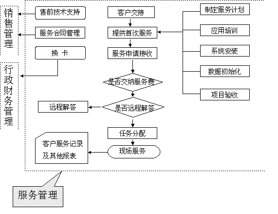 選定適合中小企業(yè)應(yīng)用的CRM軟件 ----啟利CRM ( ChineseCRM.Net ),并由啟利公司負責提供實施服務(wù)。CRM系統(tǒng)的主要模塊包括:市場管理、銷售管理、服務(wù)管理、行政管理,各模塊主要業(yè)務(wù)流程圖如下: