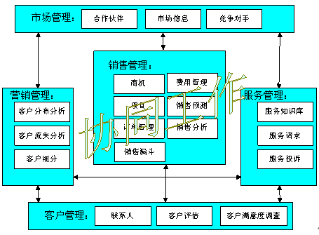 以客戶管理、銷售、服務、營銷、市場之間的協(xié)同工作(CooperativeWorking)為基礎目標;