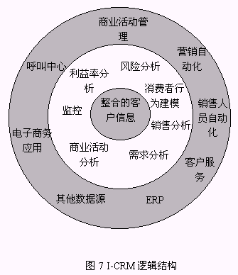 2) I-CRM的數(shù)據(jù)存儲(chǔ)中心可以導(dǎo)出供客戶接觸使用的數(shù)據(jù),可以直接被商業(yè)活動(dòng)管理利用。OLAP分析可以直接在數(shù)據(jù)存儲(chǔ)中心的基礎(chǔ)上使用。知識(shí)發(fā)現(xiàn)需要的數(shù)據(jù)一般從數(shù)據(jù)存儲(chǔ)中心按需要抽取;