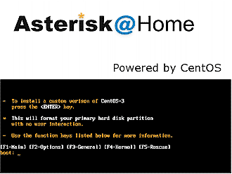 圖1:Asterisk@Home安裝啟動(dòng)屏幕