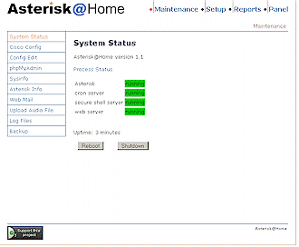 web GUI也被認(rèn)為是Asterisk管理入口(Asterisk Management Portal,AMP),使用它可允許你讀取和編輯數(shù)據(jù)庫,查看報(bào)告,更改設(shè)置等(圖3)。