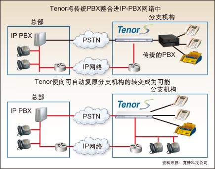 能使H.323和SIP終端得以繼續(xù)適用、還能在IP網(wǎng)絡(luò)中提供緊急呼叫(E911)服務(wù),這些性能使IP網(wǎng)關(guān)對(duì)運(yùn)營(yíng)商更具吸引力。寬騰公司從Tenor產(chǎn)品開(kāi)始瞄準(zhǔn)了企業(yè)用戶。