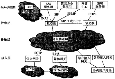 基于軟交換技術(shù)的網(wǎng)絡(luò)結(jié)構(gòu)是以軟交換設(shè)備為核心,能夠?qū)崿F(xiàn)業(yè)務(wù)與控制、接入與承載彼此分離,各功能部件之間采用標(biāo)準(zhǔn)協(xié)議進(jìn)行互通的體系結(jié)構(gòu)。通過優(yōu)化網(wǎng)絡(luò)結(jié)構(gòu)實(shí)現(xiàn)網(wǎng)絡(luò)的融合和業(yè)務(wù)的融合,使得分組交換網(wǎng)絡(luò)能夠繼承原有電路交換網(wǎng)中豐富的業(yè)務(wù)功能,同時(shí)可以在全網(wǎng)范圍內(nèi)快速提供原有網(wǎng)絡(luò)難以提供的新型業(yè)務(wù)。