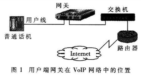 近年來隨著寬帶網絡和IP技術的日益發(fā)展,VoIP>(Volee over Internet Protoc01)技術的應用越來越廣泛。網關是VoIP網絡中的重要設備,按照應用領域可分為電信級網關和用戶端網關。用戶端網關設備主要應用于小區(qū)和企業(yè),是連接終端電話和IP網絡的橋梁,主要功能是進行語音編解碼、信令處理、VoIP協(xié)議處理和路由協(xié)議處理等。用戶端網關設備在VoIP網絡中的位置如圖1所示。可以看出,網關處于用戶電話線路部分的末端、IP網絡部分的起始端。
