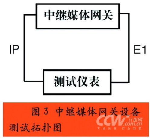 我國通信行業(yè)國家標(biāo)準(zhǔn)《IP中繼媒體網(wǎng)關(guān)設(shè)備測(cè)試方法》中明確了中繼媒體網(wǎng)關(guān)十個(gè)大項(xiàng)的測(cè)試,分別是基本功能測(cè)試、接口測(cè)試、協(xié)議測(cè)試、通信流程測(cè)試、網(wǎng)管功能測(cè)試、性能測(cè)試、可靠性測(cè)試、網(wǎng)同步測(cè)試、常規(guī)測(cè)試和環(huán)境測(cè)試。按照?qǐng)D3所示的測(cè)試拓?fù)鋱D進(jìn)行連接,使用測(cè)試儀表仿真軟交換、綜合接入設(shè)備和程控交換機(jī),就可以按照測(cè)試方法中的測(cè)項(xiàng)要求,逐一得出測(cè)試結(jié)果。
