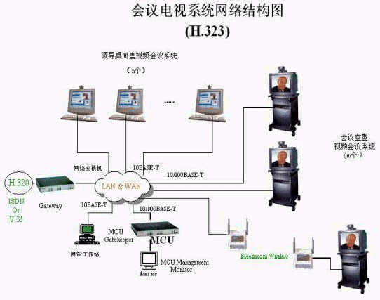 因此,對于會議電視系統(tǒng)的建設,我們推薦采用H.323方案。方案的總體結構如下: