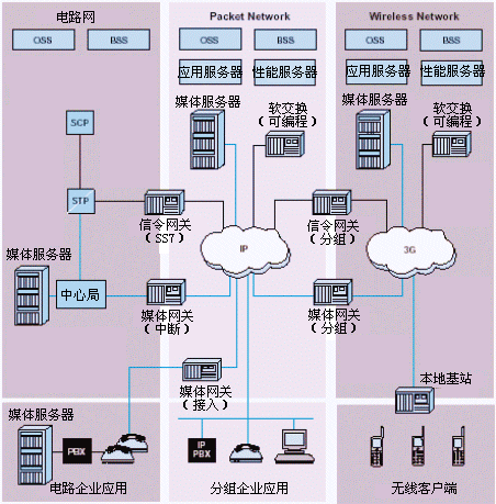 - 特征服務(wù)器--從現(xiàn)有電路交換網(wǎng)絡(luò)實(shí)現(xiàn)信號(hào)控制點(diǎn)(SCP)業(yè)務(wù)以及由本地交換和接入?yún)R接交換機(jī)提供的高級(jí)業(yè)務(wù)。